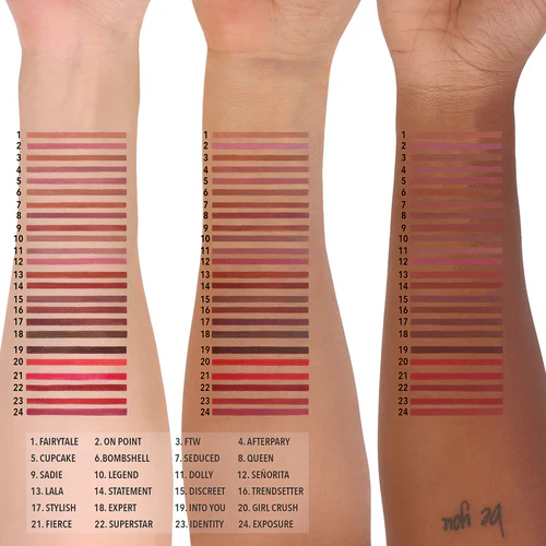 • For a long-lasting base or matte finish, fill in lips completely.
